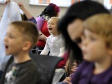 Während die Plätzchen im Ofen verschwanden, erlebten die Kids die neueste Aufführung des Mitmachtheaters mit Clown Fridolin.