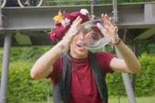 - Matthias den auf Stelzen laufenden Luftballonmann, welcher der großen Hitze standhaft blieb